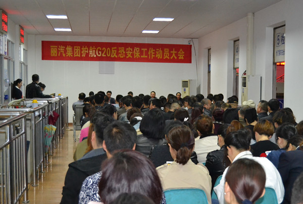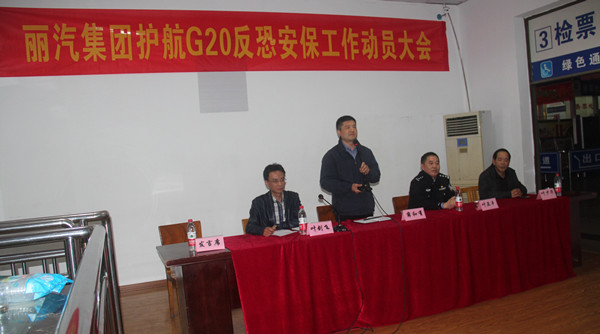 為切實加強集團公司反恐安保防范的各項工作,4月14日晚,麗汽集團護航G20反恐安保工作動員會在客運東站候車室召開。集團公司總經(jīng)理薛和有、反恐支隊長葉亞平、集團公司安全保衛(wèi)稽查部經(jīng)理葉少華出席會議,東站全體人員、各運輸單位領(lǐng)導班子及安全人員共200余人參加大會。會議由集團公司總經(jīng)理助理葉劍飛主持。