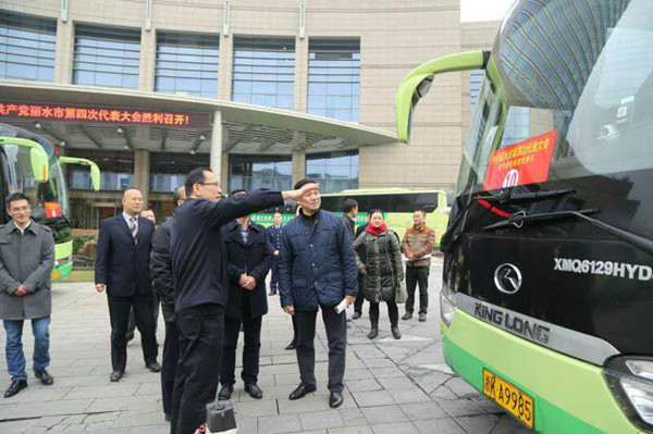 當(dāng)看到所有車輛都是統(tǒng)一的淺綠色,象征“綠水青山就是金山銀山”,每輛車前醒目的位置都放置著統(tǒng)一規(guī)格的黨代會(huì)制定用車紅牌子,車容整潔;所有駕駛員都統(tǒng)一穿著麗汽集團(tuán)司服,司乘人員精神飽滿時(shí),史書記大加贊賞,對(duì)車輛的準(zhǔn)備工作非常滿意。并走進(jìn)車?yán)?,和司機(jī)師傅們進(jìn)行了親切的交談,勉勵(lì)大家認(rèn)真細(xì)致為本次黨代會(huì)用車做好服務(wù)工作。