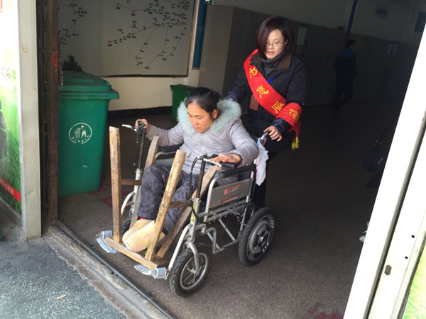 司機(jī)看見了,也過來(lái)搭把手,兩人一起把殘疾乘客子扶上了車。殘疾乘客坐到位置后,楊嬌妹熱心地幫她系好了安全帶。