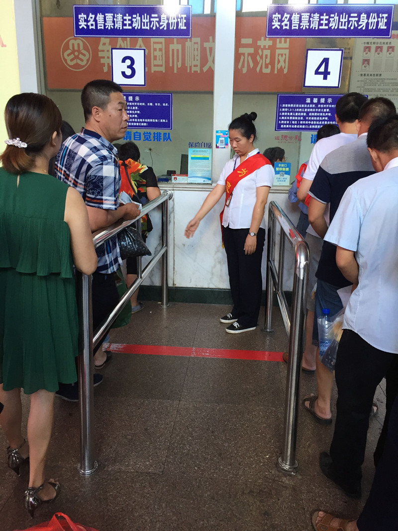 自從全國文明城市創(chuàng)建工作對一米線提出要求開始,東站售票廳一米線前的文明勸導(dǎo)工作就落在了站售組的組員身上。