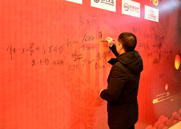簽名墻前,麗汽集團(tuán)領(lǐng)導(dǎo)、到會(huì)嘉賓紛紛簽名留念,相談甚歡!字里行間,書寫了對(duì)汽車4S店員工一年來(lái)的肯定贊許,笑語(yǔ)聲中,也充滿對(duì)新一年的期盼和祝愿!