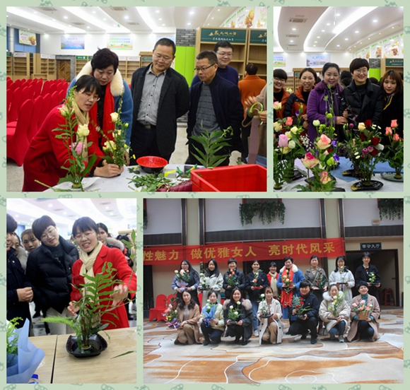 在插花分會場,麗水職業(yè)技術學院邱東萍副教授給大家講解插花藝術和技巧,特別教了時下流行的用劍山插花技巧。緊接著女工們進行插花實踐操作,分組進行插花比賽,只見女工們使出渾身解數(shù),在美麗的鮮花面前,個個都心靈手巧,她們有用劍山、有用花泥插花,很快一盆盆靚麗的鮮花就得以呈現(xiàn)。邱東萍教授和助手們選出好的作品給大家一一作了點評。