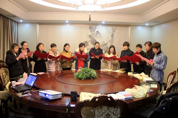 在閱讀分會場,只見女工們圍坐在一起,開啟一場閱讀的盛宴?!罢阄髂细锩瘛庇懒鱾?,閱讀者們首先向革命先輩們致敬,由工會主席呂麗君帶領大家一起朗讀了《弘揚“浙西南革命精神” 聚焦聚力“麗水之干”》。緊接著以擊鼓傳花的形式,鼓?;湔l家,由誰進行朗讀。朗讀者們朗讀中有婉轉、有昂揚,個個聲情并茂。朗讀中,集團公司黨委書記、董事長葉茂、常務副經(jīng)理總何赤詮、副總經(jīng)理廖翊堯也加入了朗讀行列。根據(jù)個人表現(xiàn),評選出了“誦讀女王”。