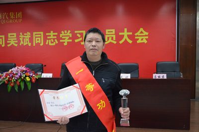 集團(tuán)公司黨委書記、董事長陳建敏,常務(wù)副總經(jīng)理何赤詮為吳斌同志頒發(fā)榮譽(yù)證書、獎杯及獎金。