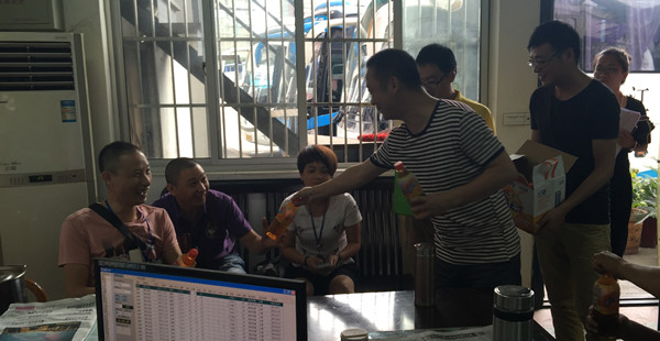 梁巍經(jīng)理為即將發(fā)車的駕駛員送去清涼。