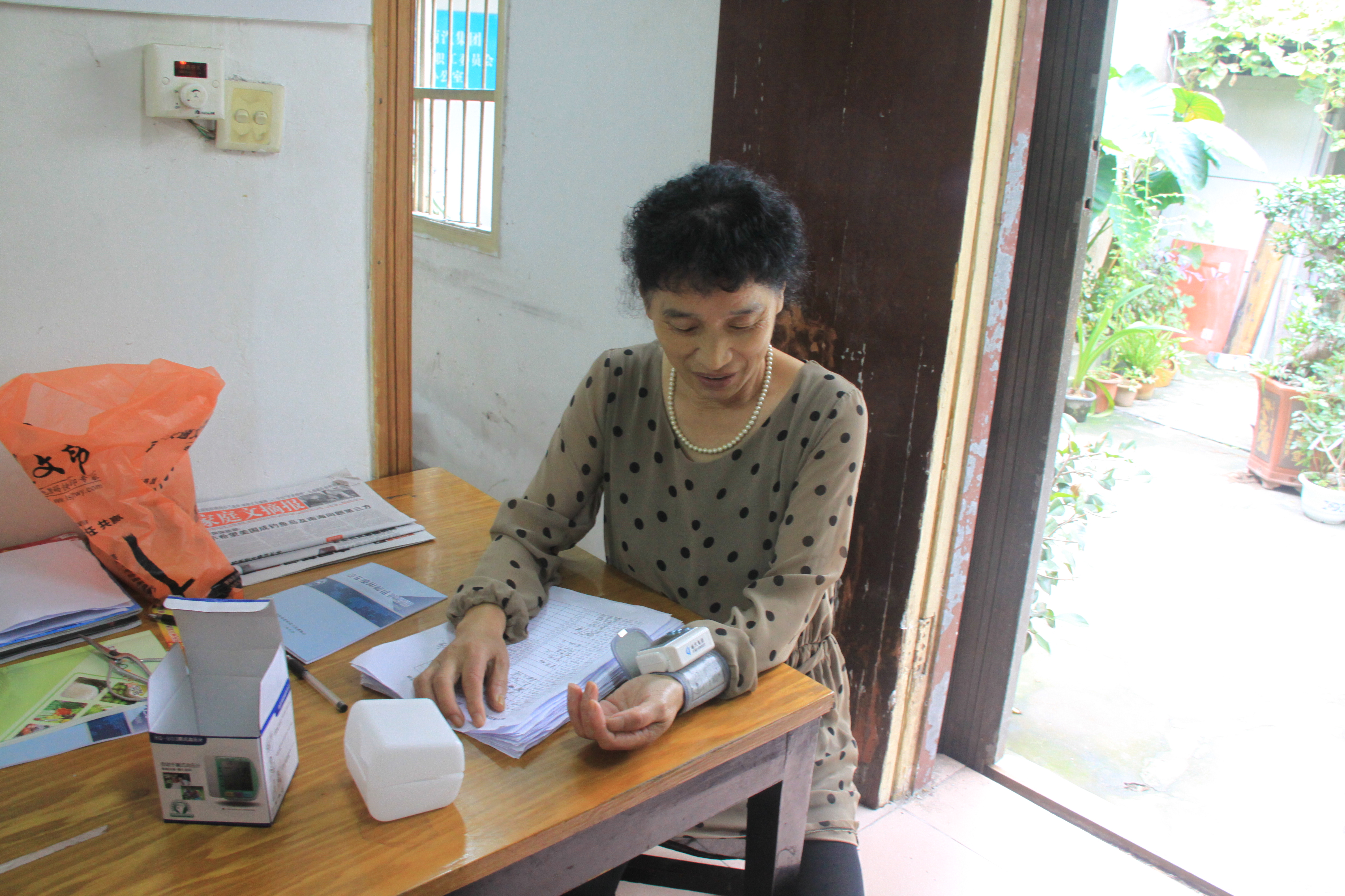圖為離退休職工正在體驗(yàn)集團(tuán)公司送來的慰問品