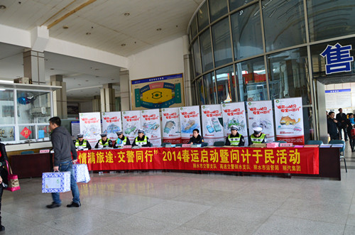 16日上午,集團(tuán)公司與市交警支隊(duì)、高速交警支隊(duì)、市運(yùn)管局等單位在客運(yùn)西站舉行春運(yùn)啟動(dòng)暨問計(jì)于民活動(dòng)。(宣教部 蘭寧)