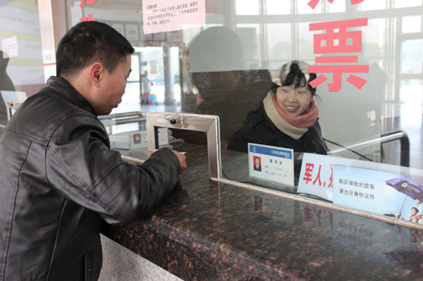 “您好,請(qǐng)問(wèn)您到哪?”西站售票窗口里傳出尤麗娟甜美的聲音,尤麗娟是售票組春運(yùn)的一名老將,有多年春運(yùn)經(jīng)驗(yàn)。春運(yùn)首日,尤麗娟是最早到崗,開(kāi)啟售票窗口迎接旅客的到來(lái)。春運(yùn)期間,售票員無(wú)疑是車(chē)站最忙的、最累的崗位之一,尤麗娟說(shuō),每當(dāng)她看見(jiàn)旅客拿著回家的車(chē)票臉上浮現(xiàn)幸福的笑容時(shí),她覺(jué)得很溫暖,有一種責(zé)任感油然而生。