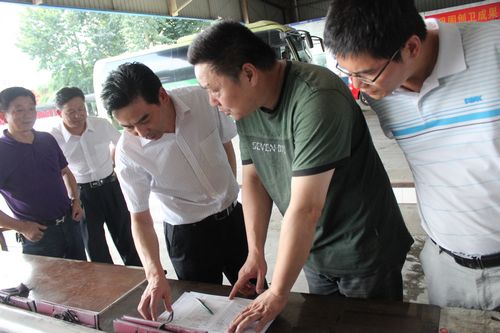 7月16日下午,浙江省交通運(yùn)輸廳副廳長(zhǎng)王寅中一行蒞臨集團(tuán)公司檢查安全生產(chǎn)工作情況。麗水市交通運(yùn)輸局副局長(zhǎng)李根林,麗水市運(yùn)管局副局長(zhǎng)金昌平,集團(tuán)公司常務(wù)副總經(jīng)理何赤詮陪同檢查。