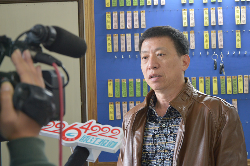 客長運(yùn)分公司車隊(duì)長樓群面對(duì)記者表達(dá)了他對(duì)章雙林的肯定(張國軍/攝)