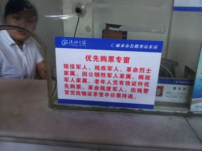 6月5日,走進客運東站的候車大廳,細心的旅客就會發(fā)現(xiàn),售票窗口新增了老人優(yōu)先購票的溫馨提示,以及每排候車座椅都設置了兩個老人專座。原來,這是客運東站根據(jù)麗水市政府〔2006〕28號精神,為進一步方便老年旅客到東站購票、候車,而在開設特殊旅客購票窗口和綠色通道的基礎上增設的老人購票專窗、老人專座。