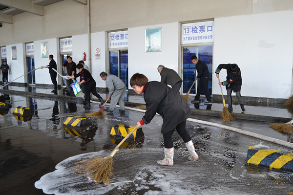 1月20日下午,東站經(jīng)理室?guī)ьI(lǐng)東站黨(團(tuán))員志愿者進(jìn)行了站內(nèi)衛(wèi)生大掃除。在活動(dòng)現(xiàn)場(chǎng),大家干勁十足,分工合作,黨(團(tuán))員志愿者們充分發(fā)揚(yáng)先鋒模范、不怕苦不怕臟的精神,對(duì)發(fā)車位以及站場(chǎng)地面進(jìn)行了徹底的清理,經(jīng)過大家的共同努力,發(fā)車位煥然一新,地面整潔干凈。