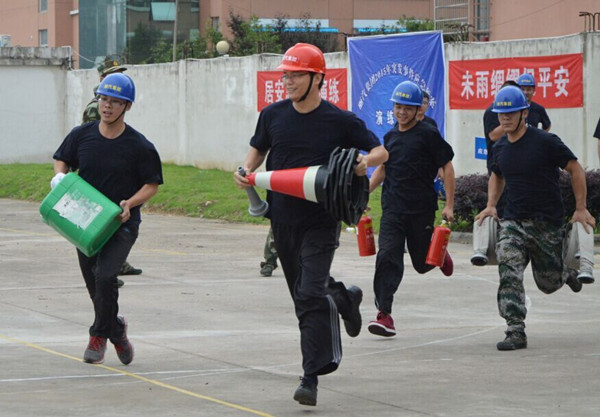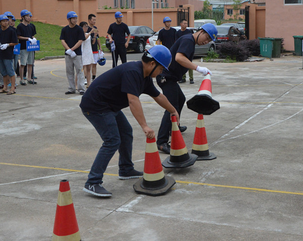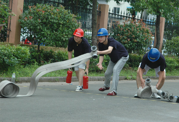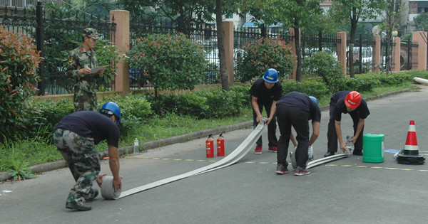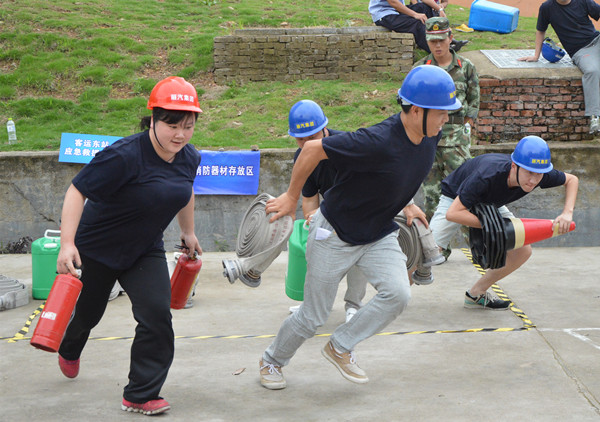 11個代表隊趕赴現(xiàn)場列隊集結(jié)完畢后,開始科目二演練。蓮都區(qū)消防大隊官兵首先給大家講解和示范了演練內(nèi)容,然后各參演代表隊現(xiàn)場抽簽排定出場順序。首先出場的是房產(chǎn)傳媒聯(lián)合代表隊。一聲令下,四個隊員箭步?jīng)_向器材存放區(qū),各自拿起相應(yīng)的器材沖向操作區(qū),兩位隊員放置泡沫桶、警戒桶,兩位隊員打開水帶、接好水槍。完成操作后,又緊急趕往滅火區(qū)。兩位隊員依舊迅速放置好泡沫桶、警戒桶,兩位隊員手拎滅火器,迅速拔掉安全插銷,從上風(fēng)口向“起火點”噴射滅火劑。經(jīng)過奮力撲救,火勢被完全撲滅。然后隊員們按原路返回,將器材放回存放區(qū)。其他10個代表隊也依次出場。
