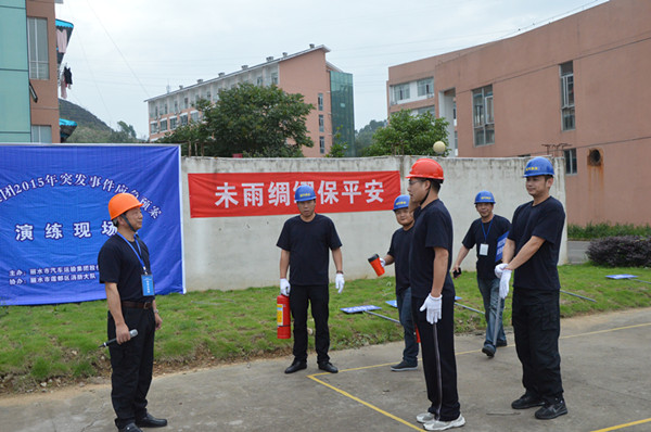 為使演練更加貼近實戰(zhàn),本次演練的時間、地點都屬保密內(nèi)容,事前均未告知各個參演單位,只在演練當(dāng)日以短信的形式通知各參演單位聯(lián)系人。下午14:30,事故演練現(xiàn)場總指揮、麗汽集團常務(wù)副總經(jīng)理何赤詮下達開始演練的指令,演練工作小組立即通過短信群發(fā)告知各參演單位第一時間趕赴事故現(xiàn)場。各單位聯(lián)系人收到事故短信后,按生產(chǎn)事故報告程序及時、全面的向相關(guān)部門報告(將事故情況以短信發(fā)送至指定手機號碼的形式模擬報告程序),然后攜帶必要的應(yīng)急救援物資和個人防護用品趕赴現(xiàn)場,參加救援。8分鐘后,客運西站代表隊第一個趕到事故現(xiàn)場。18分鐘后,11個參演代表隊全部到達事故現(xiàn)場。
