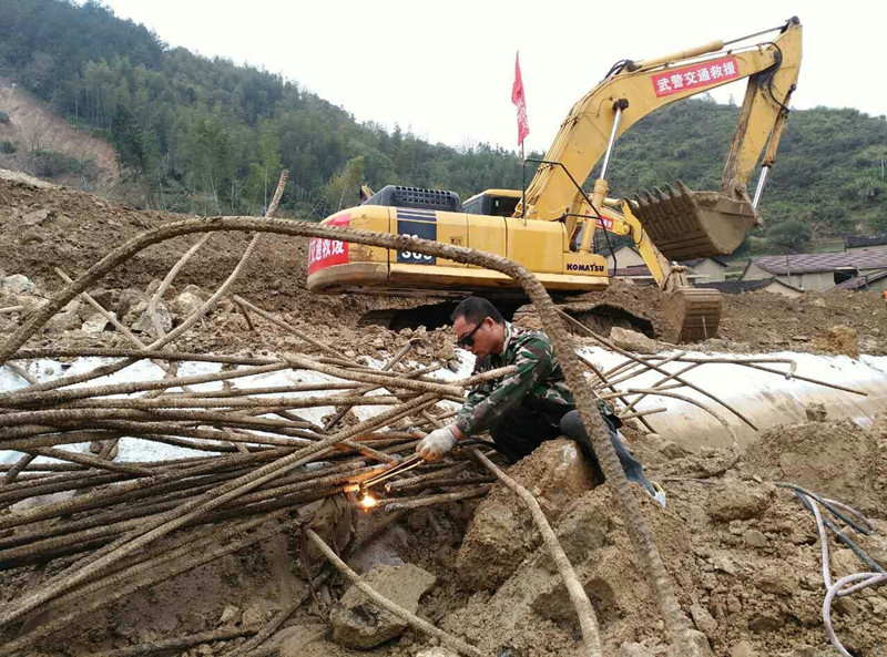 修理工陳健和葉仕林組裝好氣割設(shè)備后,將鋼筋切隔分段,金旭陽和吳天軍兩人則和現(xiàn)場的消防、武警戰(zhàn)士一起將切割好的鋼筋搬離現(xiàn)場。在搬鋼筋的過程中,他們的腳陷入了泥潭,手被鋼筋磨出了水泡,汗水濕透了衣服,但誰也沒有吱一聲。經(jīng)過眾人馬不停蹄的3個多小時的努力,被掩埋的二十多噸鋼筋全部按要求搬離。
